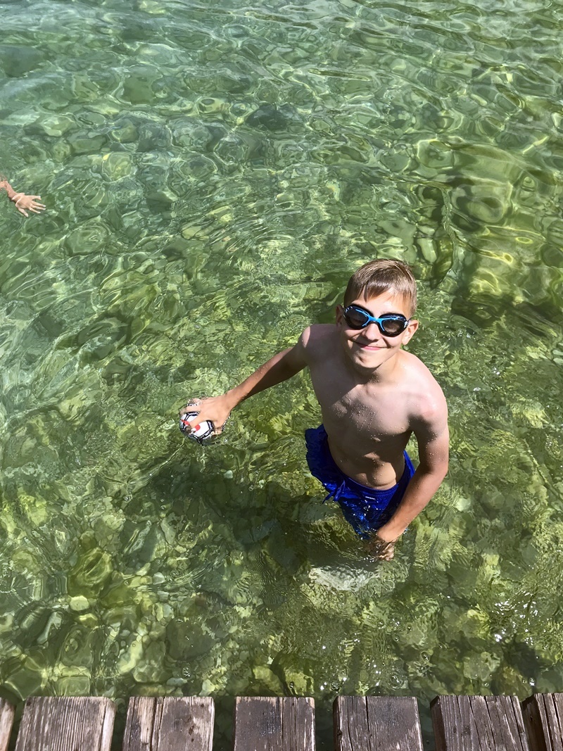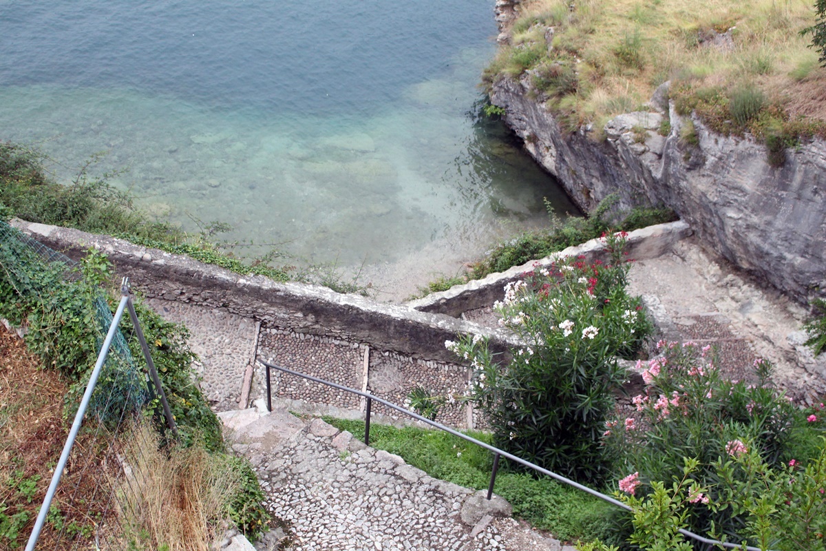 Plaże nad Gardą w naszej okolicy były generalnie dość wąskie i żwirowo – kamieniste. W wielu miejscach znajdziemy pomosty, z których można wskakiwać do wody. Jeśli ktoś lubi poleżeć przy brzegu, warto zaopatrzyć się w dmuchane materace. Bez nich, z racji kamieni, będzie twardo. Koniecznie trzeba też pamiętać o butach do pływania, bo wejście do jeziora boso jest naprawdę trudne. Jeśli chodzi o temperaturę wody, to jest ona w górskiej części jeziora dość rześka (w części południowej była o wiele cieplejsza) i oczywiście cudnie przejrzysta.