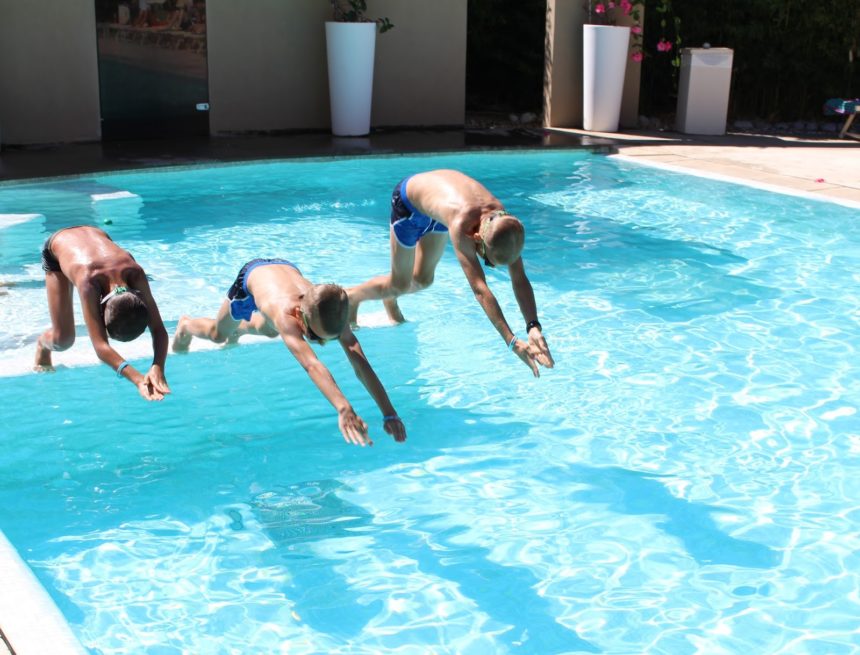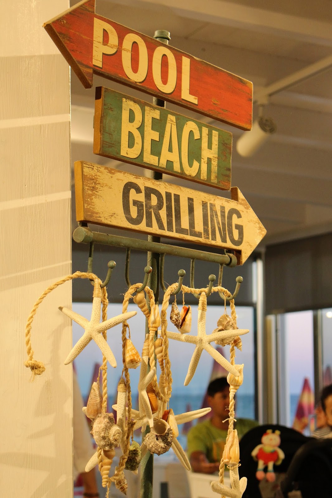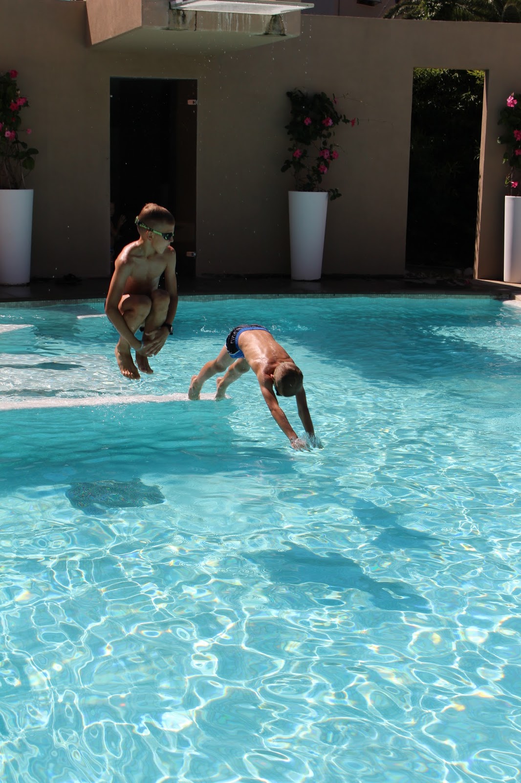 Plaża, nieopodal restauracji ‘La Conchiglia’, ma miluteńki, biały piaseczek i fajny, wolno opadający brzeg – przez co dzieciaki mogły bezpiecznie pluskać się w płytszej wodzie. Można było wypożyczyć również rowerki wodne, wyposażone w zjeżdżalnie (nam niestety nie udało się ich wypróbować – trochę za mocno wiało by wypłynąć na głębszą wodę).Chłopcy natomiast woleli urzędować na basenie, gdzie mogli ciągle nurkować i nie wkurzać się na mega słoną wodę, drażniącą w twarz i wszelkie nawet maleńkie rany na skórze.