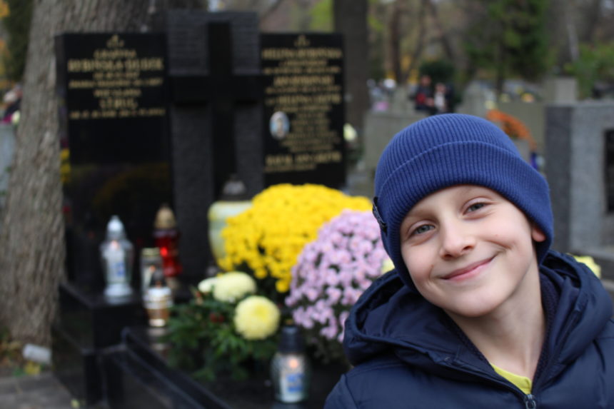 Jak co roku, 1-szego listopada wybraliśmy się na spacer po Cmentarzu Rakowickim. Tym razem poza odwiedzeniem grobów naszych bliskich, mieliśmy też dodatkową misję. Leoś zgłosił się do udziału w konkursie historycznym, w ramach którego miał odwiedzić jak najwięcej miejsc w Krakowie, związanych z odzyskiwaniem niepodległości.