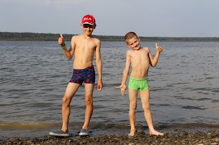 Chłopcy mieli też okazję popływać i pokopać się w piachu;